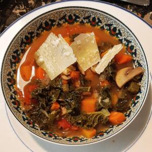 Retirer la croute du parmesan et servir dans un bol avec des copeaux de parmesan
